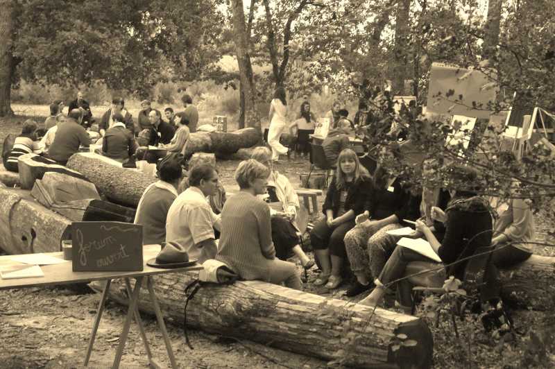 Au milieu des arbres, assi-se-s sur des rondins de bois, des feuilles sous les pieds, nous eûmes l’occasion d’aborder des idées très diverses, ainsi que des pistes d’action à peaufiner. Nous nous sommes rencontré-e-s, tout simplement, avons parcourus les expériences de chacun-e, construit ensemble un futur à plusieurs.